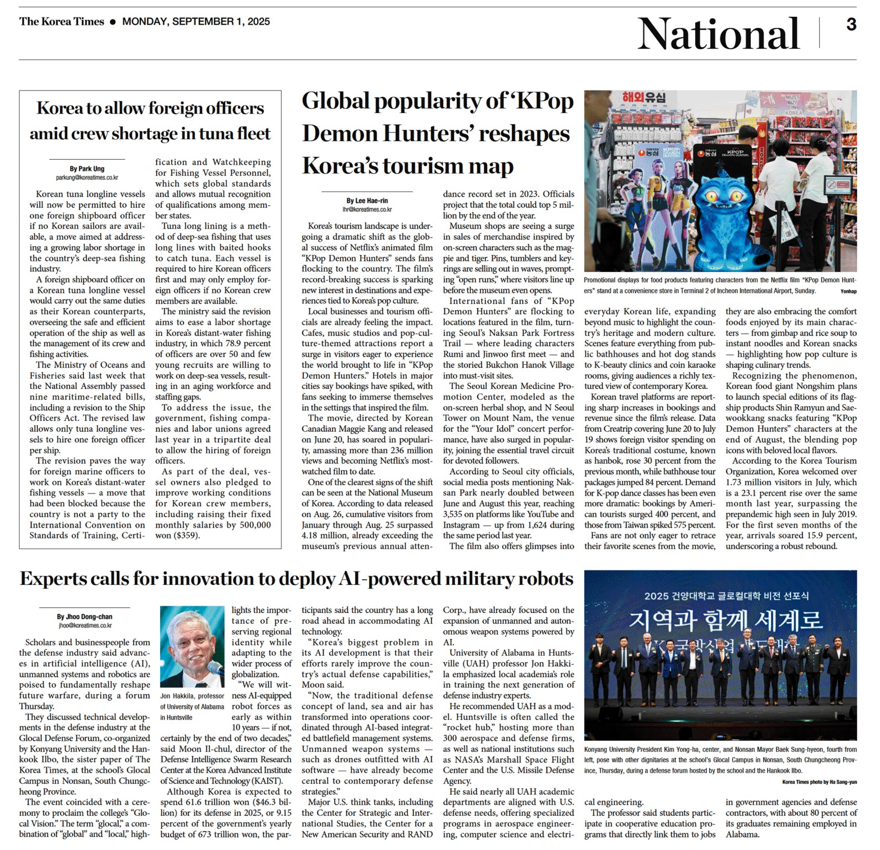 | 제목 | Experts call for innovation to deploy AI-powered robot forces (2025.9.1.) | ||||
